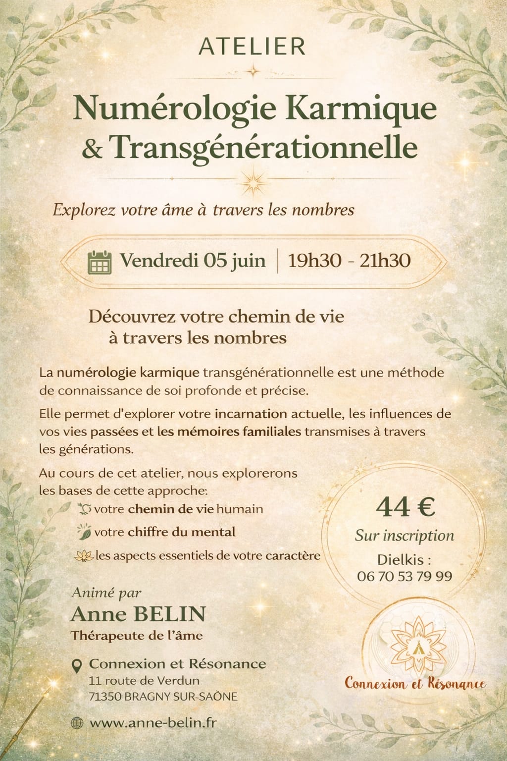 Au cours de cet atelier, nous explorerons toutes les possibilités de cette méthode tant au niveau individuel que pour un duo/couple. Puis pour chacun des participants, nous détaillerons : votre chemin de vie humain, votre chiffre du mental et votre caractère.
